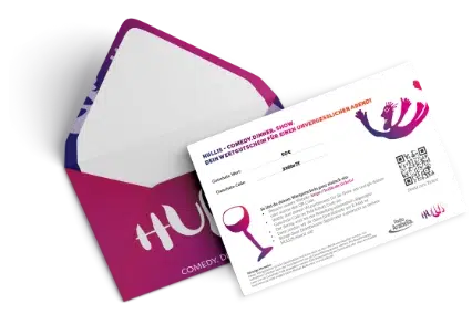 Verschenke nicht nur einen Geschenkgutschein – sondern Freude, Staunen und Begeisterung mit einem HULLIS-Dinnershow-Gutschein. Ob als Last-Minute-Geschenk zum Selbstausdrucken oder als liebevoll gestaltete, hochwertig gedruckte Karte – hier findest du das perfekte Erlebnisgeschenk für jeden Anlass. Wähle aus verschiedenen Optionen, die genau zu deinen Wünschen passen, und sorge für unvergessliche Momente im Spiegelzelt.